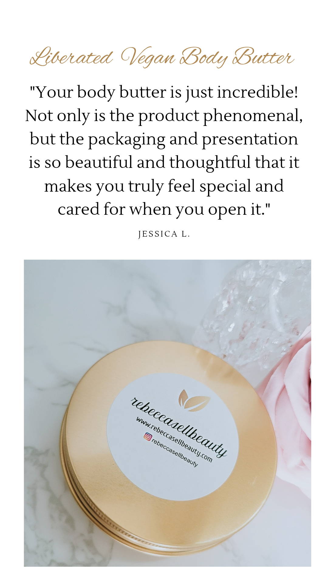 Thank you for allowing me to be a part of your journey. May my products remind you how beautiful and powerful you truly are! -Rebecca